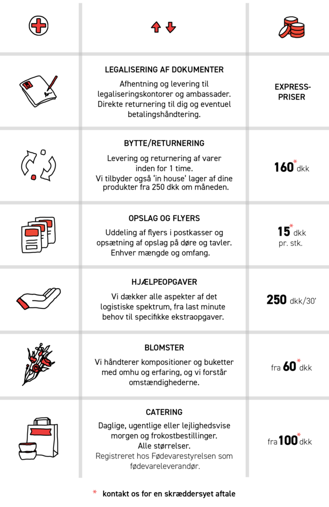 Vi garanterer levering inden for 4 timer, 1½ time eller direkte ud fra dine behov og tidspunkter.